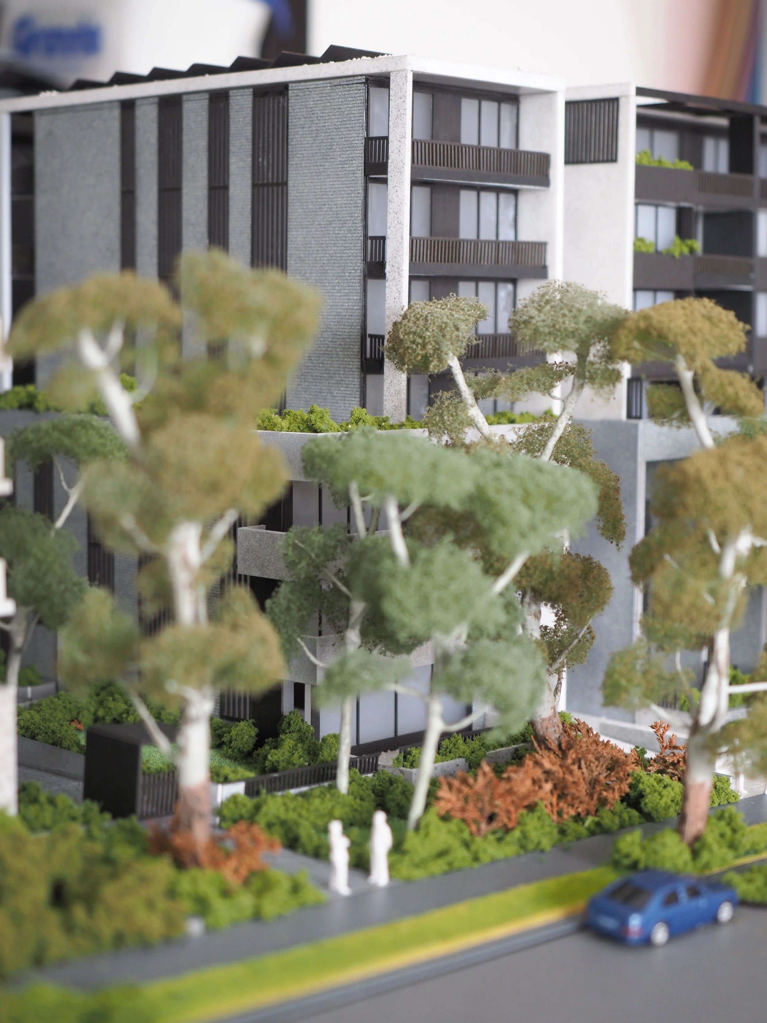 This 1:100 scale model was meticulously created to showcase the new construction of five residential properties in Willoughby for a marketing launch in a display suite.